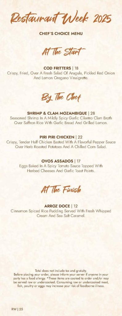 THE RESTAURANT WEEK PROMOTION IS AVAILABLE ONLY DURING THE FOLLOWING HOURS: