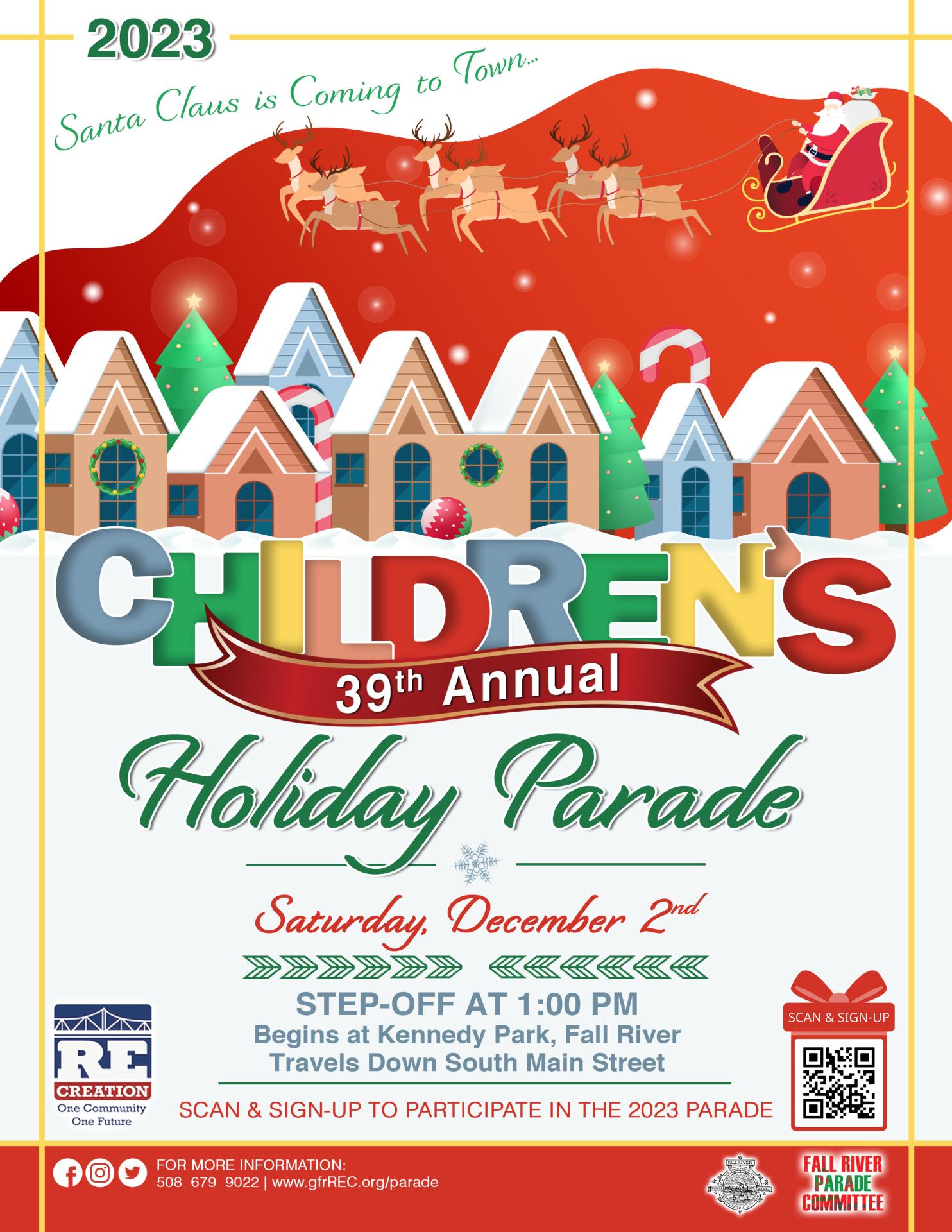 The 2023 Children’s Holiday Parade hosted by Greater Fall River RE-CREATION is looking for sign-ups! Register your band, float, vehicle, etc. in the 29th annual parade!