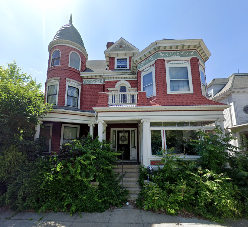 Built in 1876 by mill owner William C. Davol, Jr., who also served as the city’s fire chief. The house had alarm bells installed and an early elevator, and is attributed to Hartwell & Swazey architects who did much work in Fall River. It is the community’s finest example of residential stick-Gothic architecture. The estale originally extended west, encompassing the entire block of Rock Street with the typical “Fall River Verandah” to view the magnificent sunsets over Mt. Hope Bay.
