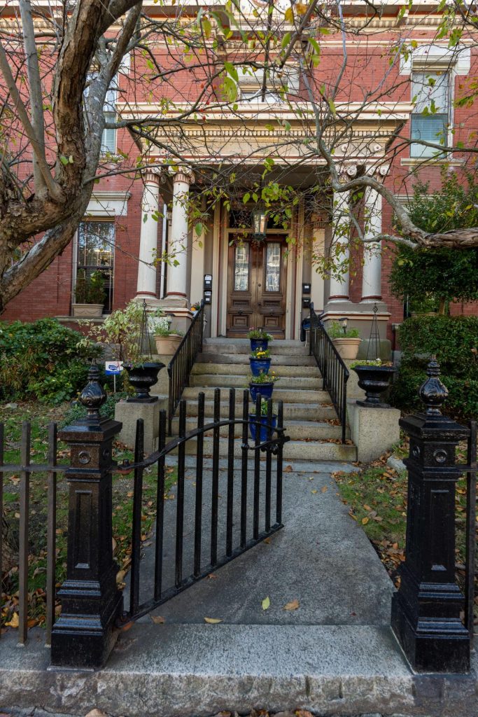 Typical of the upper, middle-class, Victorian family complex, the estate with mansion, carriage house, gasebo and cottage (1 886), was built in 1872 in the classical, Second Empire style. Theodore W. Borden was in the lumber business and the little mansard cottage was built for his daughter in 1886. Eventually, both mirage and gasebo were divided together to become 39 Belmont Street.