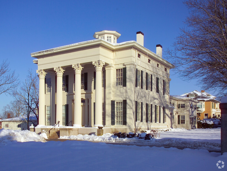 C. 1872-75 Built for Charles H. Robbins, a music teacher. A detailed Italianate house of grand proportion featuring a bracketed cupola, oversized portico supported by square columns and arched doorway, flanked by bracketed bays.