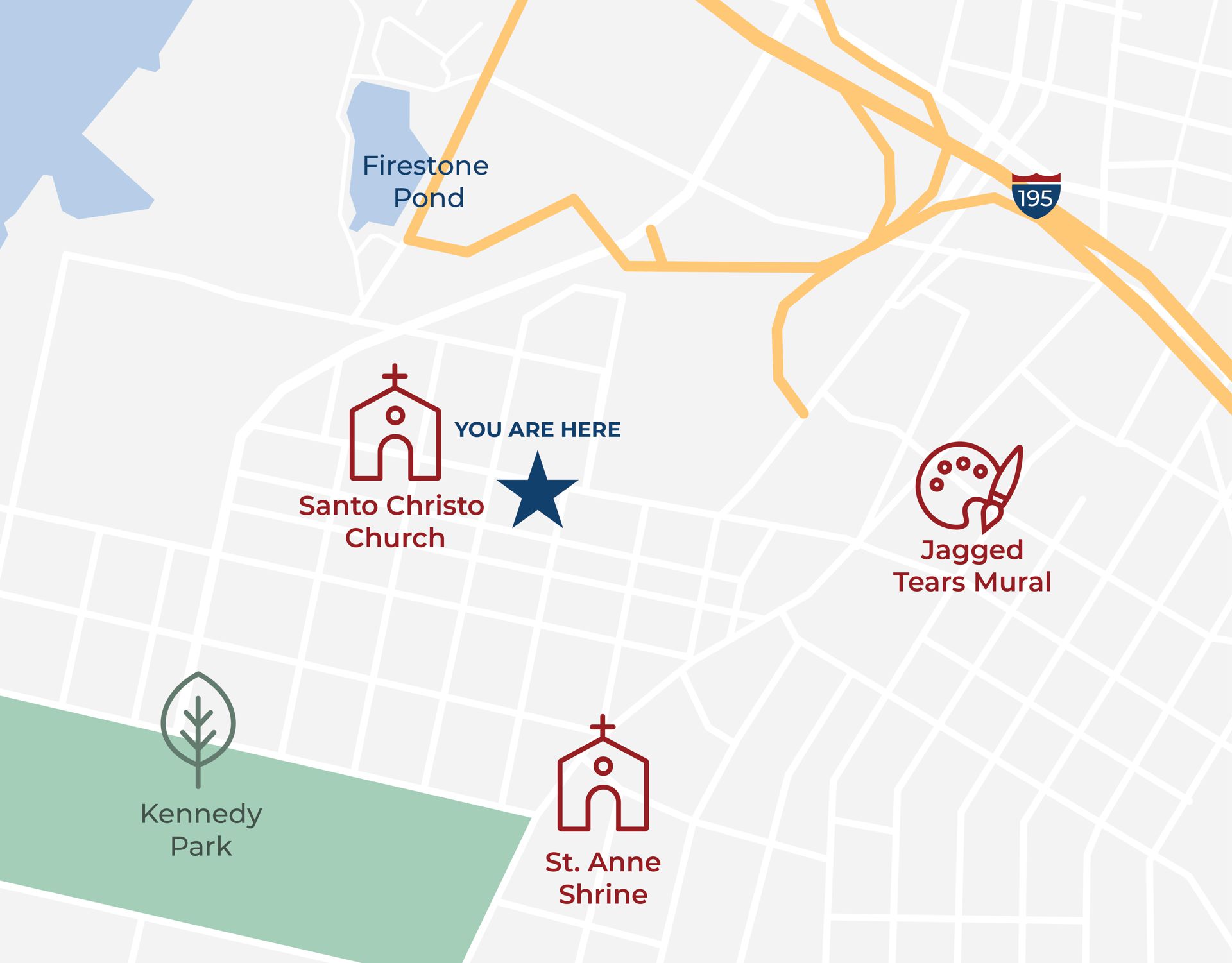 Some of Fall River’s most beautiful visual attractions are also on display here, with a variety of colorful murals and street art visible all around the neighborhood. South Main Street also connects two of Fall River’s most distinguished landmarks – St. Anne Shrine and Kennedy Park.