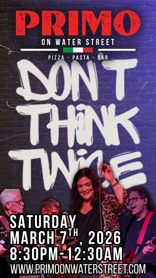 Get ready for a night of live music, high energy, and nonstop fun as Don’t Think Twice takes the stage at Primo on Water Street. This crowd-favorite band brings powerful vocals, infectious grooves, and a setlist that keeps the dance floor moving all night long.