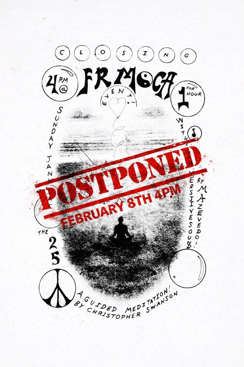 Fall River Museum of Contemporary Art 44 Troy Street, Fall River, MA, United StatesPost-Scarcity Sculpture - Closing EventDUE TO WEATHER CONDITIONS THIS EVENT HAS BEEN POSTPONED TO SUNDAY, FEBRUARY 8TH AT 4PMWe look forward to you joining us thenfor a guided meditation led by Christopher Swanson, with an immersive sound performance by SoundCell resident M. Azevedo. The session will last for one hour. Free & open to the public