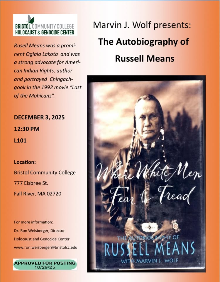 Please join us at our next event. It’s a two hour engagement with the author Marvin J Wolf. He co-authored the autobiography of Russell Means, an amazing Native American Activist! musician, artist and actor. One of his famous roles was in Last of the Mohicans.