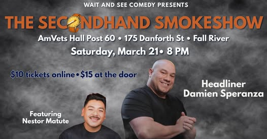 AmVets Comedy NIght: The Secondhand Smokeshow Mar 21 AmVets Comedy NIght: The Secondhand Smokeshow 8:00 pm $10.00