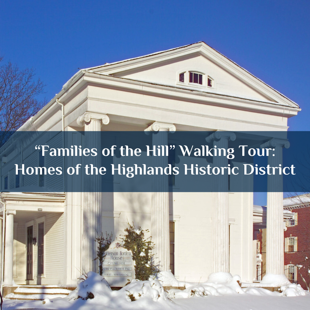 Built c. 1845 for John Jenks and Nancy Bellows Jenks, great-grandmother of Mrs. Nannie Borden Phillips, a benefactor of the Historica l Society, this 2½ story Greek Revival is one of the four, templed-fronted houses in the Highlands. It features a monumental portico with octagonal columns.